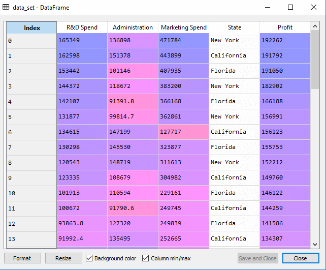 因为我们需要计算利润,所以它是因变量,其他四个变量是自变量。下面是部署MLR模型的主要步骤: