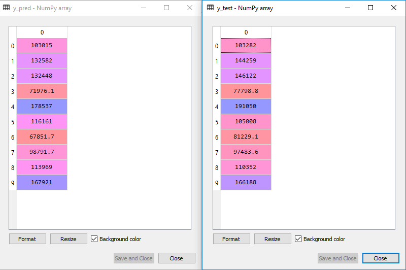 通过执行上述代码行,将在可变资源管理器选项下生成一个新向量。我们可以通过比较预测值和测试集值来测试我们的模型。。