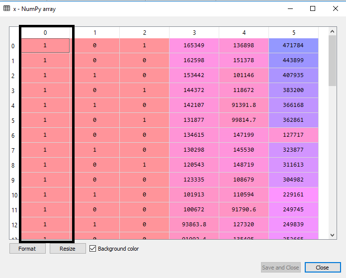 输出:通过执行上述代码行,一个新列将被添加到我们的特性矩阵中,它的所有值都等于1。我们可以通过点击变量资源管理器选项下的x数据集来检查它。