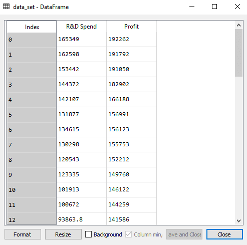 在前面的主题中,我们计算了模型在使用所有特征变量时的训练和测试分数。现在我们将只使用一个功能变量(研发支出)来检查得分。我们的数据集现在看起来是这样的: