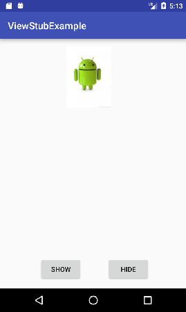 让我们创建一个ViewStub View的示例,该示例显示和隐藏在另一个布局(my_layout.xml)文件中创建的ImageView(图像)。