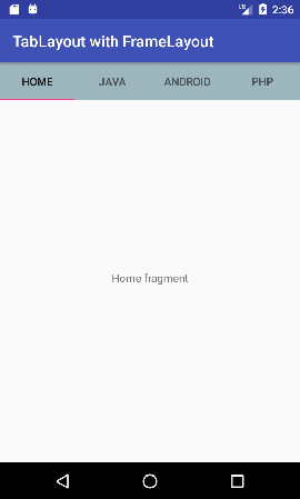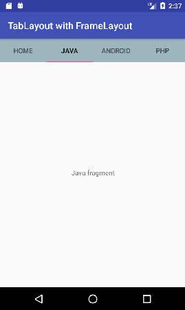 在上一页中,我们使用TabLayout和ViewPager创建了一个滑动选项卡。在这里,我们将使用TabLayout和FrameLayout创建非滑动选项卡。