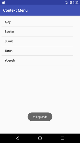 Toast.makeText(getApplicationContext(), "calling code", Toast.LENGTH_LONG).show();