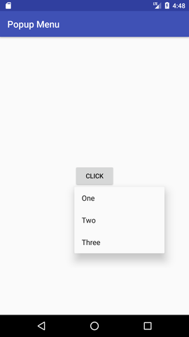 如果有空格,则Android弹出菜单在锚文本下方显示菜单,否则在锚文本上方显示菜单。如果你在弹出菜单之外单击,它将消失。