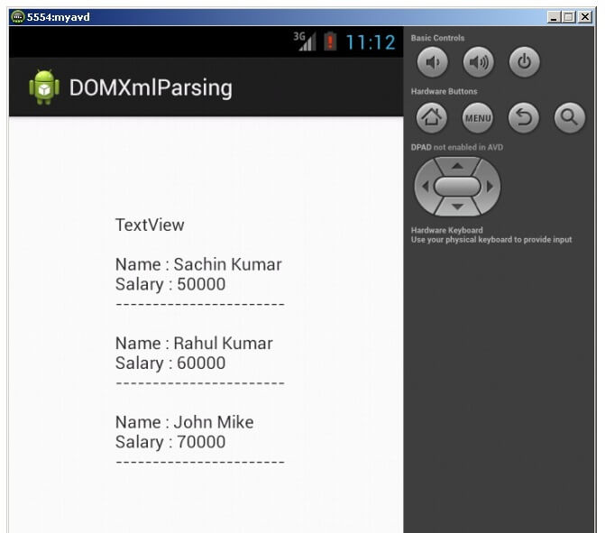 tv1.setText(tv1.getText()+"Salary : " + getValue("salary", element2)+"\n");