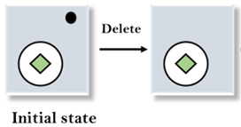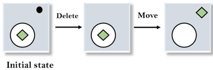 2.应用Delete运算符:由于我们可以检查到的第一个区别是,在目标状态下,初始状态下不存在点符号,因此,首先,我们将应用Delete运算符删除该点。