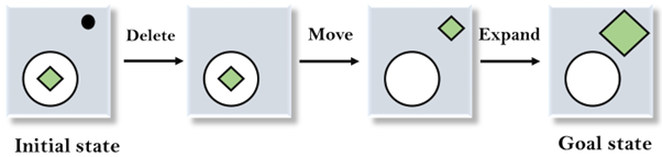 让我们举一个例子,我们知道初始状态和目标状态,如下所示。在此问题中,我们需要通过找到初始状态和目标状态之间的差异并应用运算符来获得目标状态。