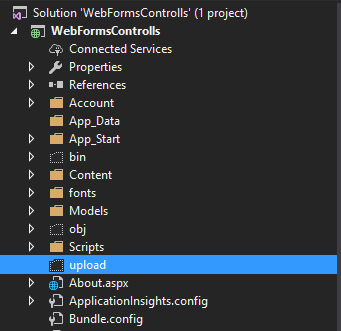 像在下面的屏幕快照中一样,在项目中创建一个目录来存储上载的文件。