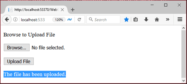 上载后,它将显示成功上传文件的消息,如以下屏幕截图所示。