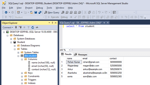 SqlDataAdapter sde = new SqlDataAdapter("Select * from student", con);