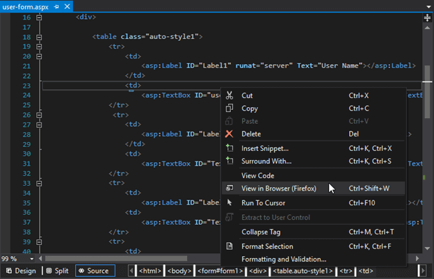 要运行此窗体,只需右键单击并在“浏览器”选项中选择“视图”。我们在例子中做过。