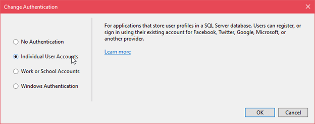单击“更改身份验证”按钮并选择“身份验证类型”。