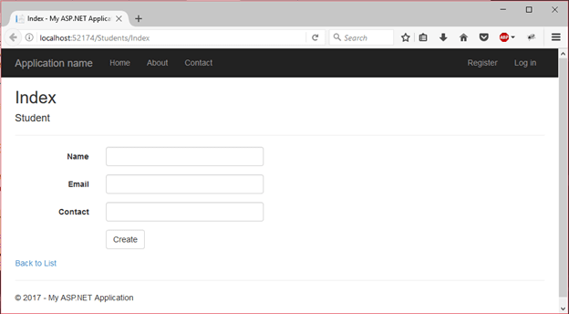 在这里,我们创建一个示例,其中一个简单的模型与视图和控制器绑定。我们正在创建具有某些属性的Student模型。这些属性将用于创建表单字段。