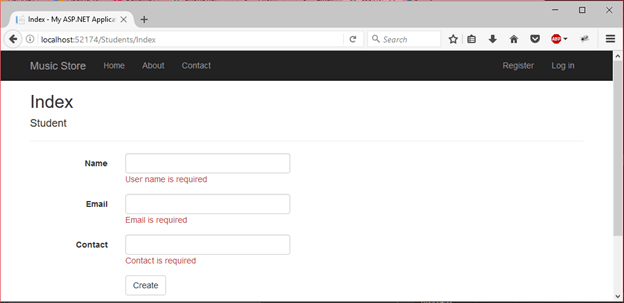 要查看输出,请右键单击Index.cshtml文件,然后在浏览器中选择view。这将产生以下结果。