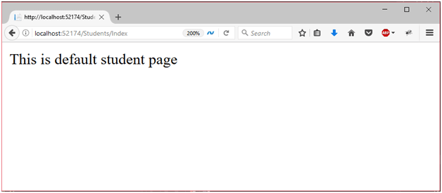 如果我们在地址栏中明确输入控制器名称和操作名称,它将重定向到同一操作。 localhost:52174 / Home / Index将对浏览器产生相同的输出。