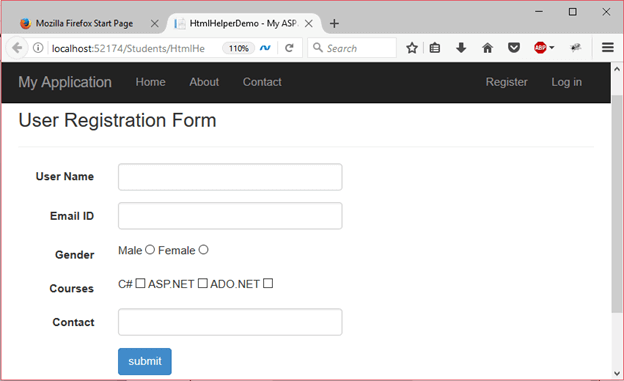 HtmlHelper是MVC 2中引入的类。它用于以编程方式创建HTML控件。它提供了内置方法来在视图页面上生成控件。在本主题中,我们列出了此类的构造函数,属性和方法。最后,我们解释了一个使用扩展方法创建表单的示例。