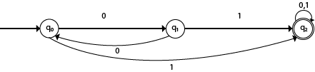 - 标记为q0的箭头表示它是开始状态,标记为q2的圆圈表示它是最终状态。