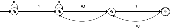 - 在第四行中,当输入0上的当前状态为q3时,下一个状态将为q2,而在输入1时,下一个状态将为q2。