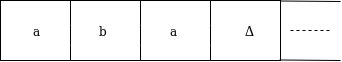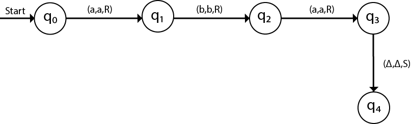 磁头将读出序列,直到Δ个字符为止。如果磁带头读出“ aba”字串,则TM在读取Δ后将停止。