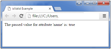 document.write("The passed value for attribute 'name' is: ", person.isValid());