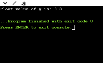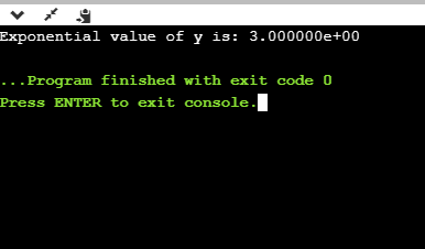 在上面的代码中,我们使用%g说明符来显示y的浮点值。%g说明符以相同的精度显示与输入相同的输出。