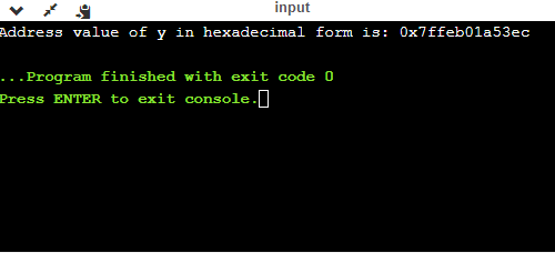 printf("Address value of y in hexadecimal form is: %p", &y);