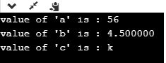 printf("\nvalue of 'c' is : %c", *((char*)ptr));
